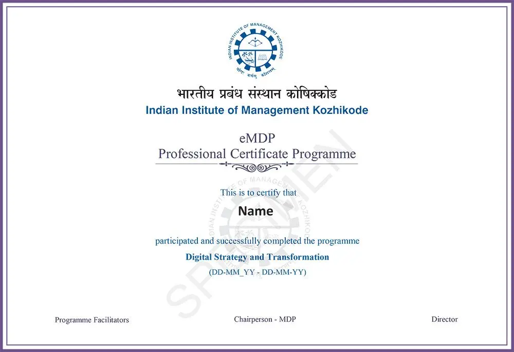 Note: All certificate images are for illustrative purposes only and may be subject to change at the discretion of IIM Kozhikode.